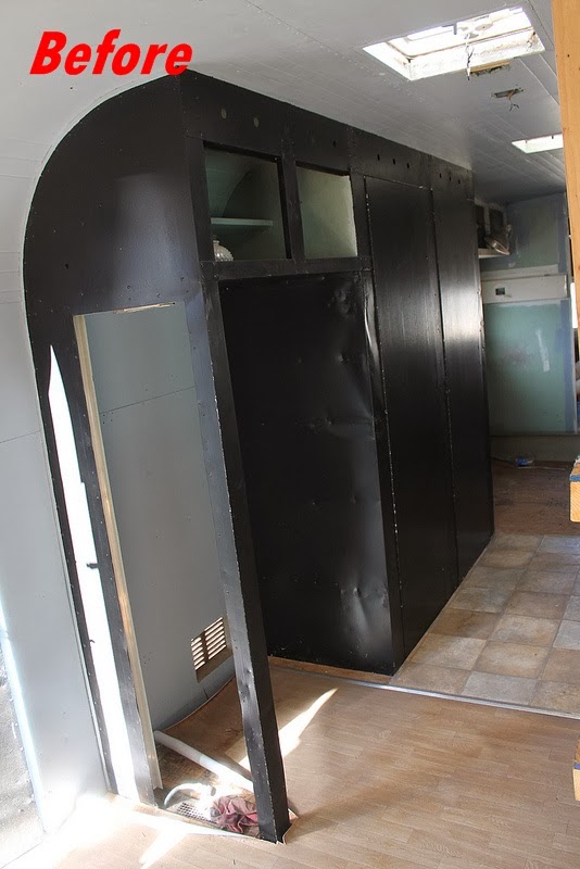 On New Year's Day, we spent the afternoon in the trailer cleaning and working on details. After all the sanding Roger had to do on the table, that end of the trailer was covered in a not so thin layer of sawdust. I vacuumed, wiped and wiped again. I even got down on the floor to clean up all the dirt and marks from the construction phase. (And we promptly messed it up again by tracking in snow.)